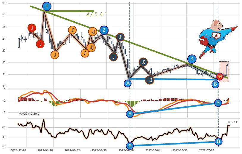 ⚔️ 2021-12-31-2022-08-10下跌趋势存在反转上涨[机会],其原下跌趋势的阻力位(17.38)已被突破[强支撑信号],原下跌趋势角度: 45.4˚