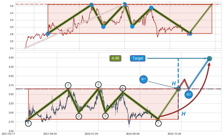 ➣ AI预测: 假定反转启动后, 第❸目标位置(2023-04-03, 2.710)