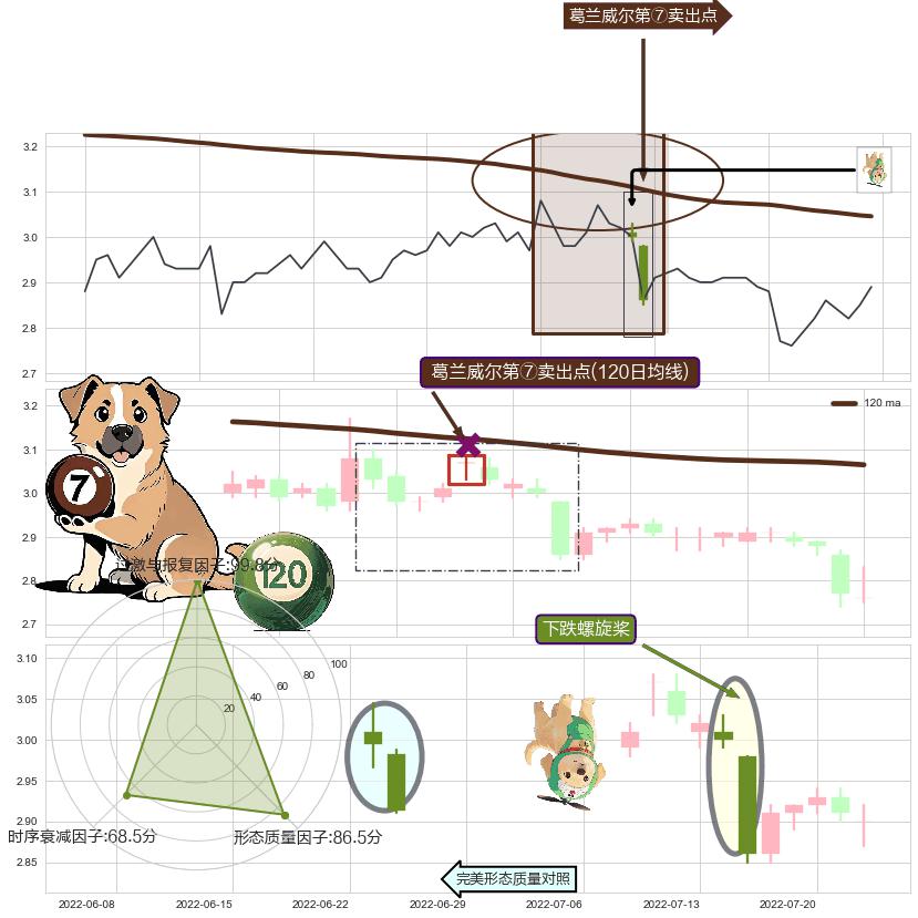 | 3 🅚:葛兰威尔第⑦卖出点 ➕ 🌊:波浪理论上涨5浪延续回调:猜想回调C点击穿破位,猜想持续蓄力回调abc下跌方向(大周期趋势均值回复后小周期持续趋势跟踪) ☞ 看空信号 ⇥ 【均线】交织【图形】⇥ 综合量化分数: 30 | > |
