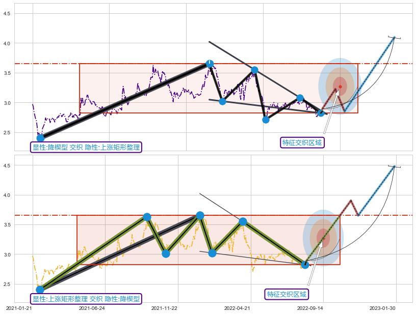 ➣ 【未确认突破,预测即将形成突破】上涨矩形整理起点:2021-02-04, 预测突破点:2022-10-17,形态共414交易日
