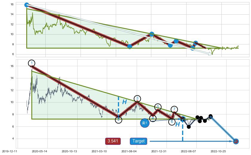 ➢ 【已确认突破】最后价格:7.58与最小【整理】第一目标价格→(2022-12-08: 3.541 )相较: 下跌空间【较大】