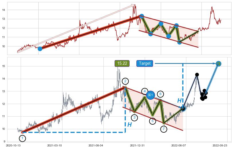 ➢ 【买1】: 激进型 买点 →(2022-05-25: 11.63 )形成突破降⚑旗形【整理】形态