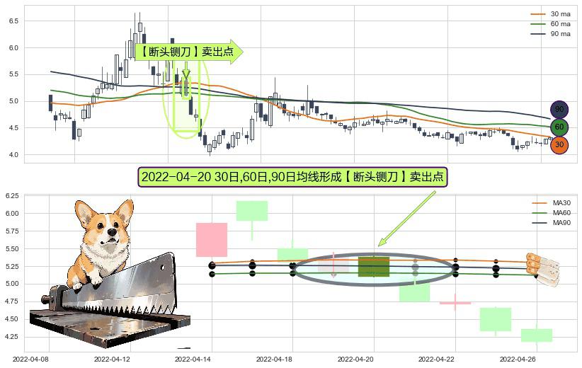 形态多维评估: ⚀ 2022-04-20日显现 30日-60日-90日均线 【断头铡刀】卖出点 看空信号,后市看跌,卖出