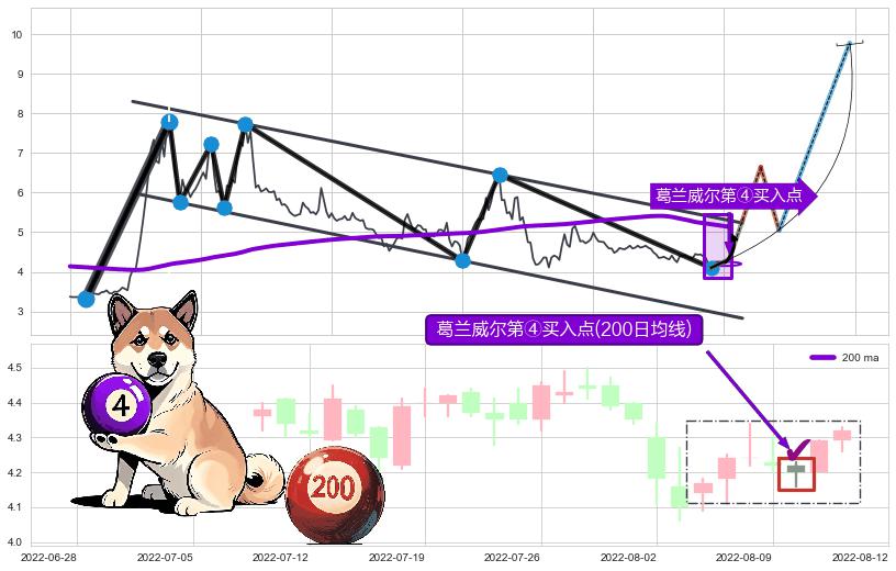 ♘ 支撑价格位4.26,可信任强度88.89%,距离最后交易2022-08-12形成的收盘价格4.32相差 -1.35%