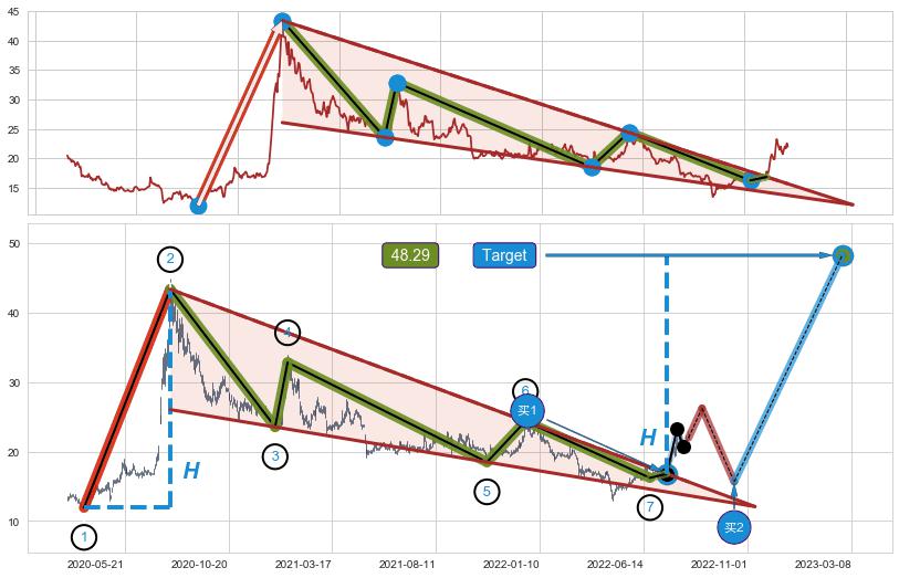 ➣ 【已确认突破】最后价格:21.98与最小【整理】第一目标价格→(2023-03-08: 48.29 )相较: 上涨空间【较大】
