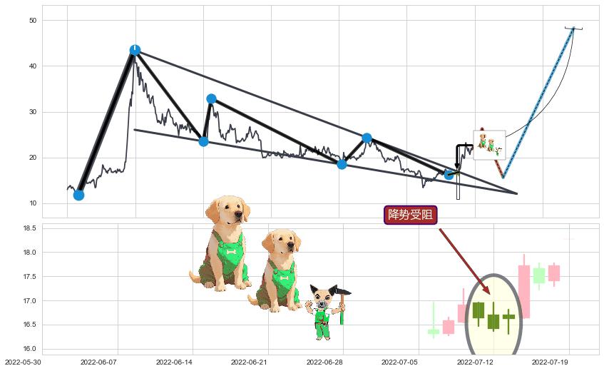 ➢ 【买1】: 激进型 买点 →(2022-07-14: 16.82 )形成突破降🚩楔型【整理】形态