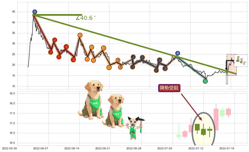 ⚔️ 2020-07-24-2022-06-15下跌趋势存在反转上涨[机会],其原下跌趋势的阻力位(15.77)已被突破[强支撑信号],原下跌趋势角度: 40.6˚