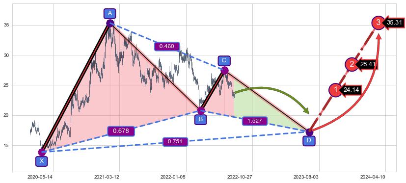 ➣ 已完成【蝙蝠】形态起点X: 2020-07-27, 终点D: 2022-03-15, 共395交易日