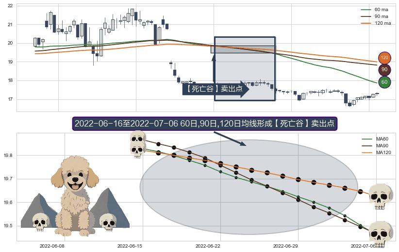 形态多维评估: ⚀ 2022-06-17-日至2022-07-06-日显现 60日-90日-120日均线 【死亡谷】卖出点 看空信号,后市看跌,卖出