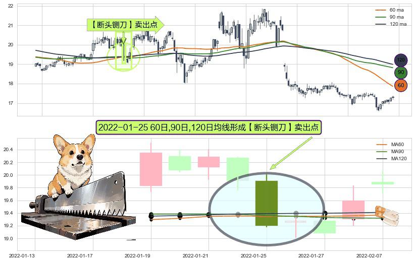 形态多维评估: ⚀ 2022-01-25日显现 60日-90日-120日均线 【断头铡刀】卖出点 看空信号,后市看跌,卖出