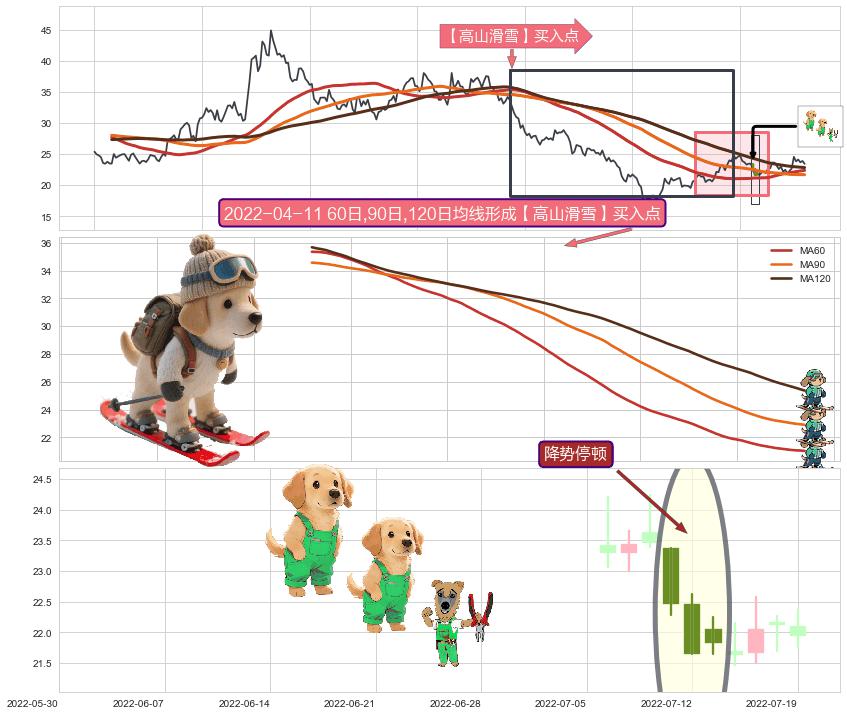 | 4 🅚:早晨之星(黎明之星) ➕ 🎢:【高山滑雪】买入点均线组合买入点信号形成后,猜想后续下行结束,持续反弹上涨(均值回复) ☞ 看多信号 ⇥ 【均线】交织【🅚线】⇥ 综合量化分数: 56 | > |