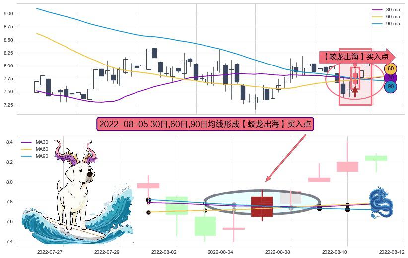 ⚀ 2022-08-05日显现 30日-60日-90日均线 【蛟龙出海】买入点 看多信号,后市看涨,买入