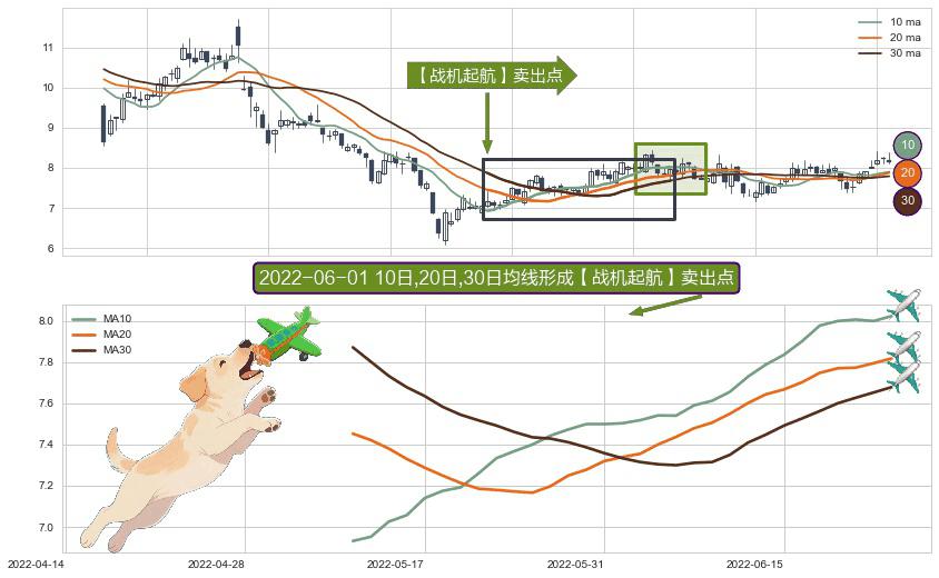⚀ 2022-05-11日-2022-06-23日显现 10日-20日-30日均线 【战机起航】卖出点 看空信号,后市看跌,卖出