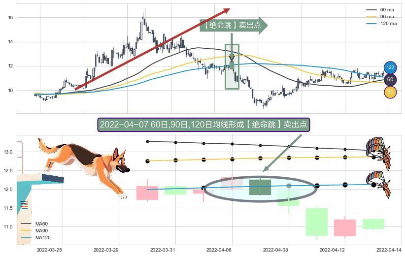 ⚀ 2022-04-07日显现 60日-90日-120日均线 【绝命跳】卖出点 看空信号,后市看跌,卖出