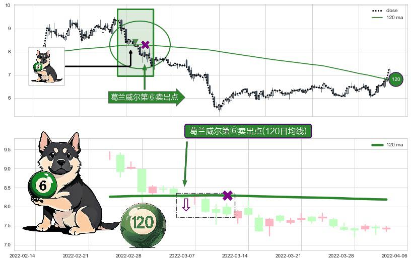 ⚀ 2022-03-04-日显现 葛兰威尔均线 120日均线 第⑥卖出点 走势反转见顶信号,后市看跌,卖出信号