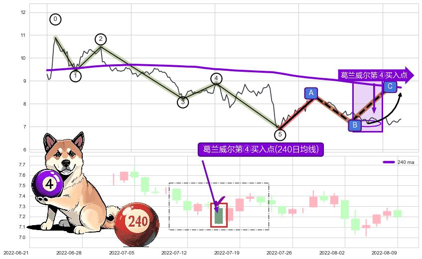 ➣ D点拟合预测价格7.51,距离最后交易收盘价格7.33相差 +2.43%