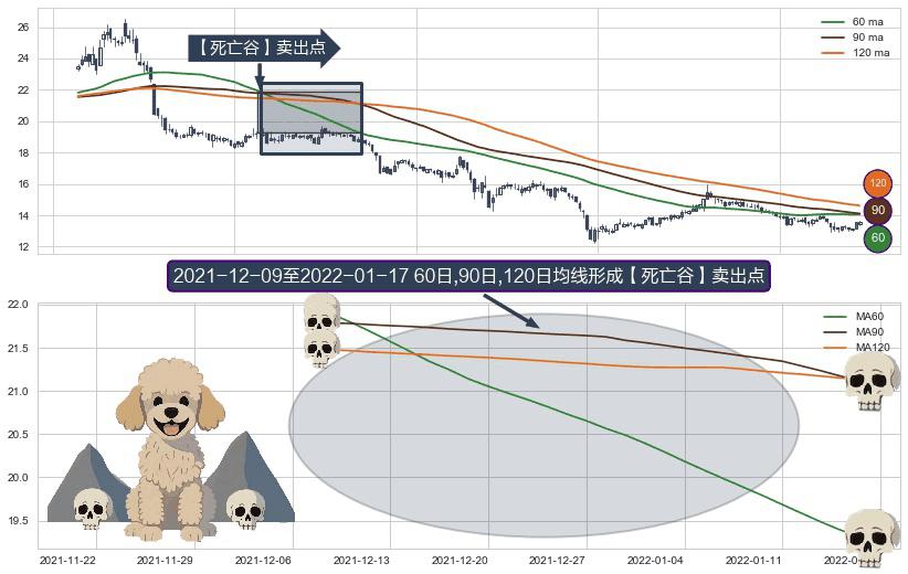 形态多维评估: ⚀ 2021-12-10-日至2022-01-17-日显现 60日-90日-120日均线 【死亡谷】卖出点 看空信号,后市看跌,卖出