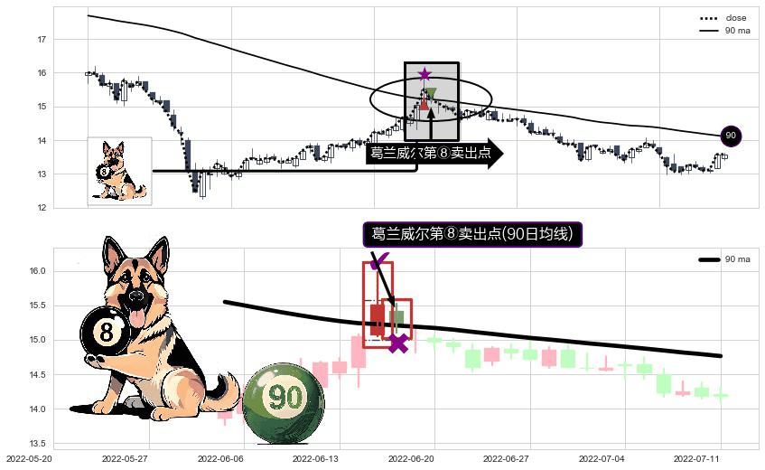 形态多维评估: ⚀ 2022-06-16-日显现 葛兰威尔均线 90日均线 第⑧卖出点 下降趋势的中继信号,后市看跌,卖出信号