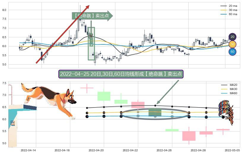 ⚀ 2022-04-25日显现 20日-30日-60日均线 【绝命跳】卖出点 看空信号,后市看跌,卖出