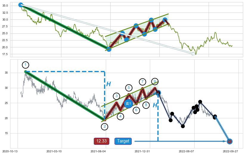 ➣ 最小中继整理跌幅→𝐇: 16.04 (𝐇旗杆的长度:旗杆起点→顶点)
