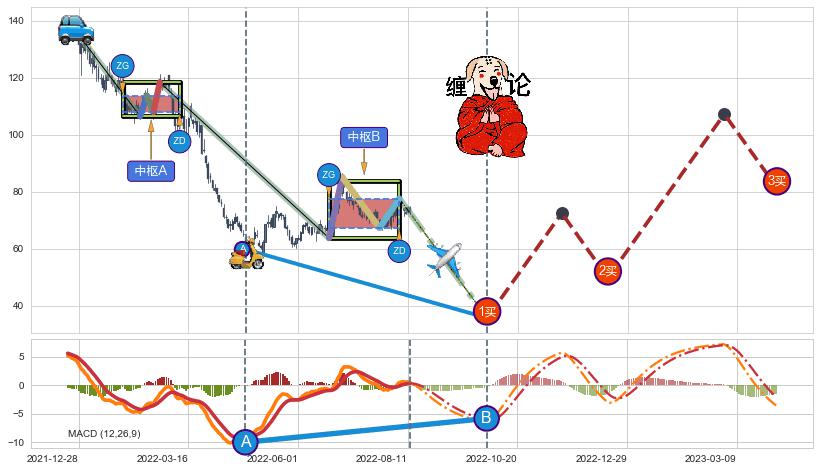 ➣ D点拟合预测价格112.49,距离最后交易收盘价格72.49相差 +55.19%