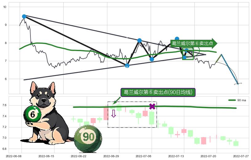 ➢ 【卖1】: 激进型 卖点→(2022-07-07: 7.25 )形成突破下降【对称】三角形整理【整理】形态