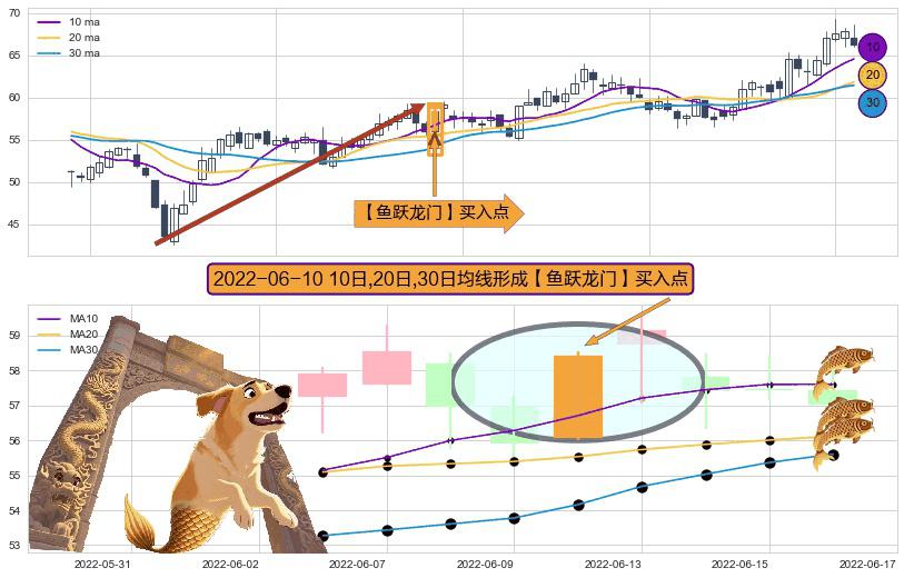 ⚀ 2022-06-10日显现 10日-20日-30日均线 【鱼跃龙门】买入点 看多信号,后市看涨,买入