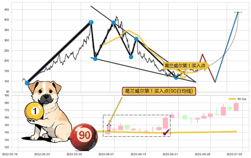➢ 【买1】: 激进型 买点 →(2022-06-06: 141.74 )形成突破降🚩楔型【整理】形态