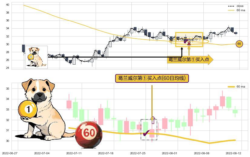 ⚀ 2022-07-26-日显现 葛兰威尔均线 60日均线 第买①入点 走势反转见底信号,后市看涨,买进信号