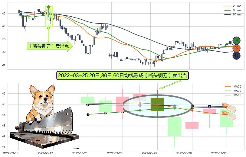 ⚀ 2022-03-25日显现 20日-30日-60日均线 【断头铡刀】卖出点 看空信号,后市看跌,卖出