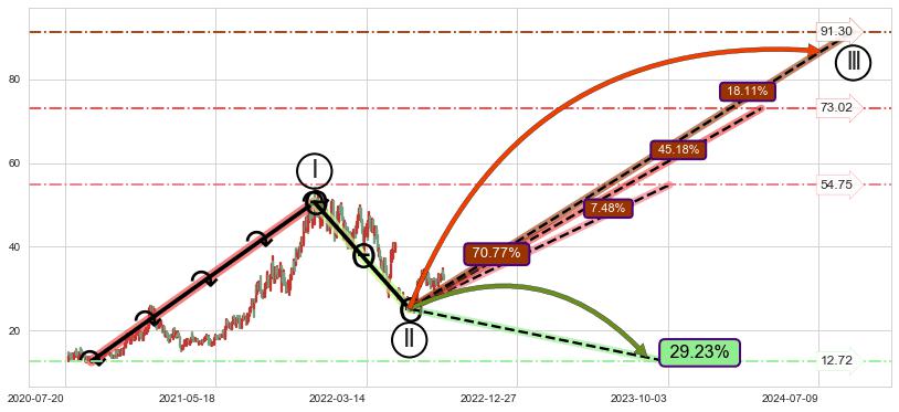 ♘ 支撑价格位14.55,可信任强度72.87%,距离最后交易2022-08-12形成的收盘价格32.65相差 -55.44%