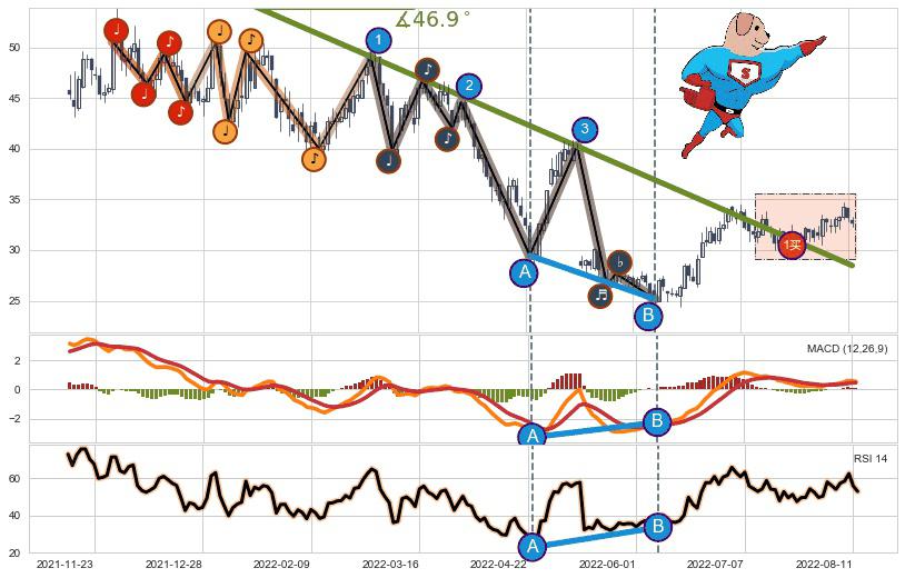 ➣ c.1: 当前c浪回调位置(2022-08-10, 34.25),仍然有回调空间