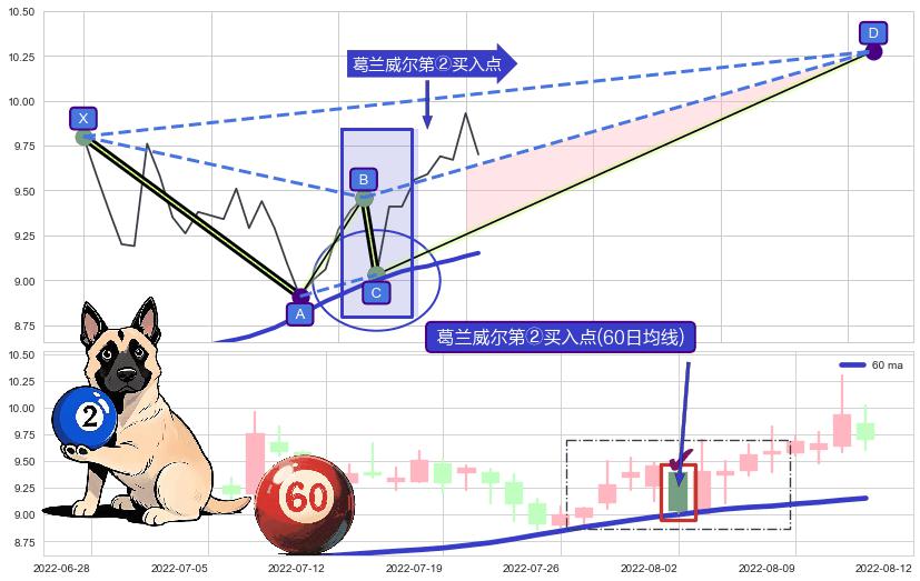➣ D点拟合预测价格10.28,距离最后交易收盘价格9.70相差 +5.94%
