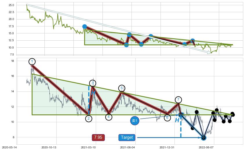 ➢ 【已达成】最小【整理】第一目标价格→(2022-04-26: 7.95 ), 后续继续【整理】下跌动力依然存在,下跌空间适中