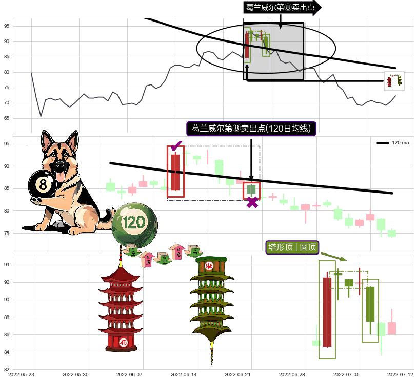 | 2 🅚:下跌两颗星 | 下跌三颗星 ➕ 🎢:葛兰威尔第⑧卖出点卖出点信号形成后,猜想后续持续下行(趋势跟踪) ☞ 看空信号 ⇥ 【均线】交织【🅚线】⇥ 综合量化分数: 40 | > |