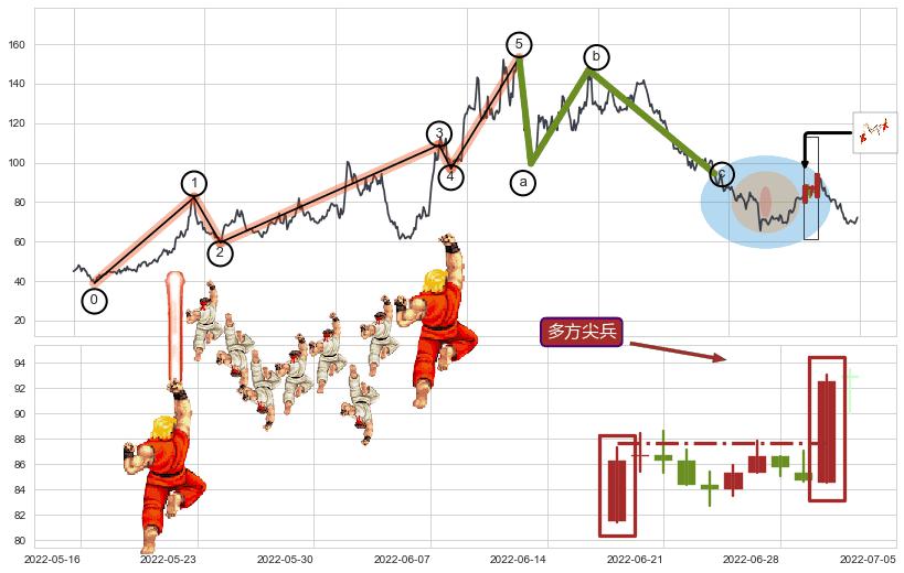 | 5 🅚:【战机起航】卖出点 ➕ 🌊:波浪理论上涨5浪延续回调:猜想回调C点击穿破位,猜想持续蓄力回调abc下跌方向(大周期趋势均值回复后小周期持续趋势跟踪) ☞ 看空信号 ⇥ 【均线】交织【图形】⇥ 综合量化分数: 38 | > |