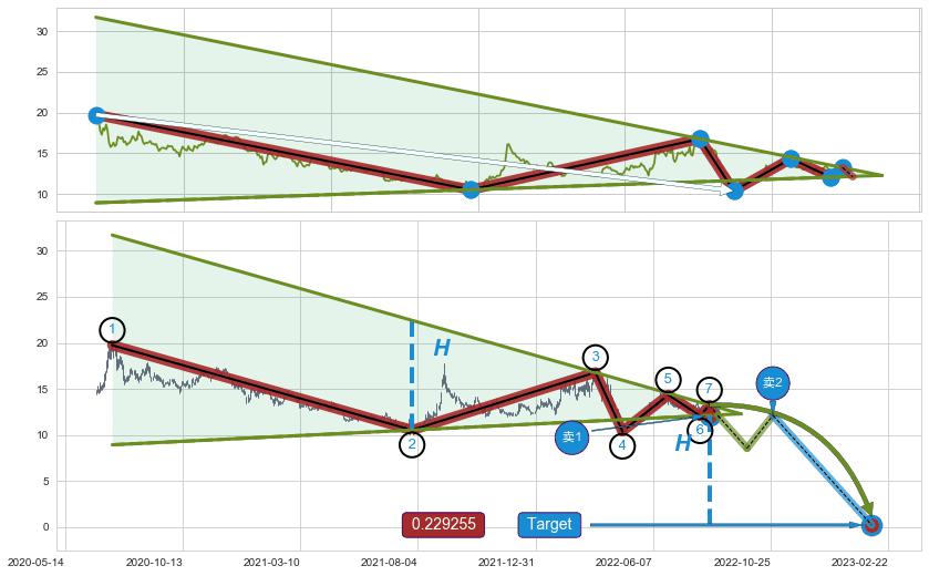 ➣ 【仅预测突破】最后价格:13.26与预测突破价格:12.13→【空间临近】后续最小【整理】第一目标价格→(2023-02-22: 0.229255 )