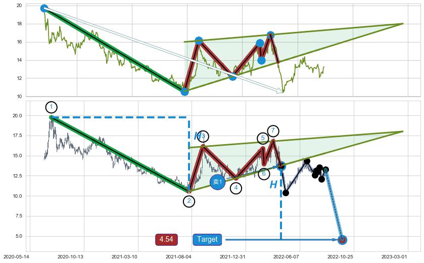 ➢ 2022-04-11到达第❶价格目标位置13.80