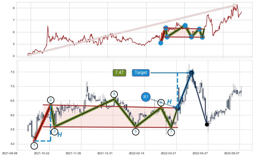➢ 【买1】: 激进型 买点 →(2022-03-22: 6.25 )形成突破降⚑旗形【整理】形态