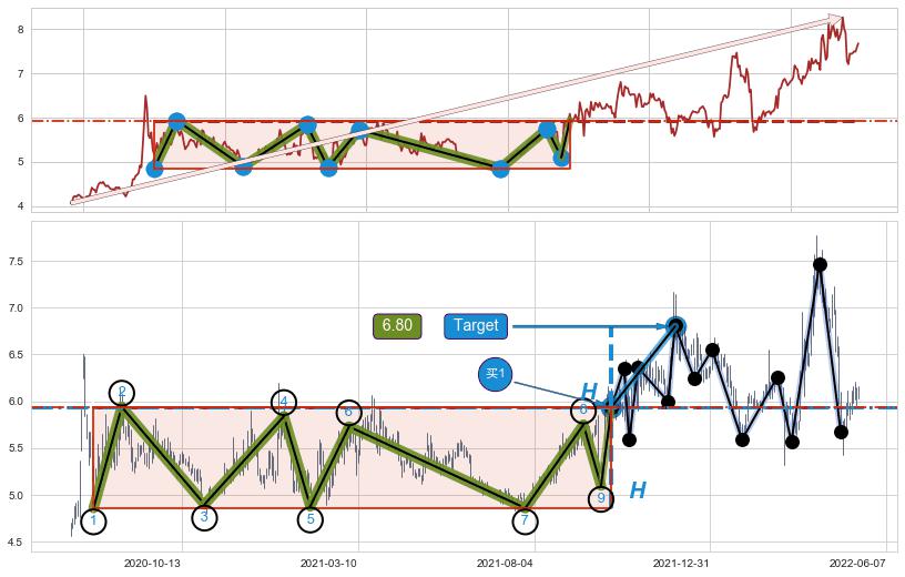 ➢ 【买1】: 激进型 买点 →(2021-10-14: 5.94 )形成突破上涨矩形整理【整理】形态