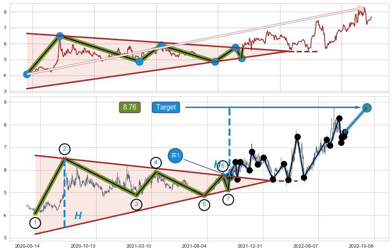 ➢ 【买1】: 激进型 买点 →(2021-10-08: 5.72 )形成突破上升【对称】三角形整理【整理】形态