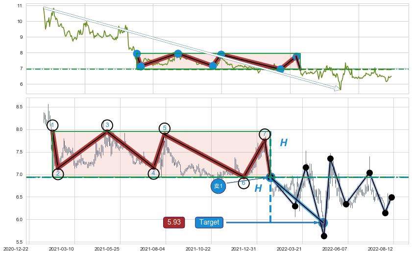 ➢ 【多方力量耗尽】已在2022-01-24突破矩形提供的【支撑】颈线 6.94 →箱形震荡盘整结束