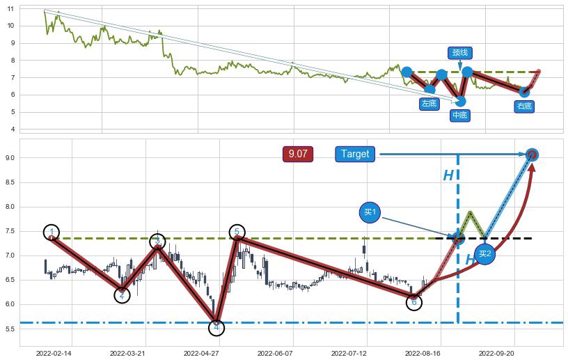 ➢ 收盘价(2022-05-23: 6.95 )→回踩→第一根k线低点(2022-05-18: 6.71 )