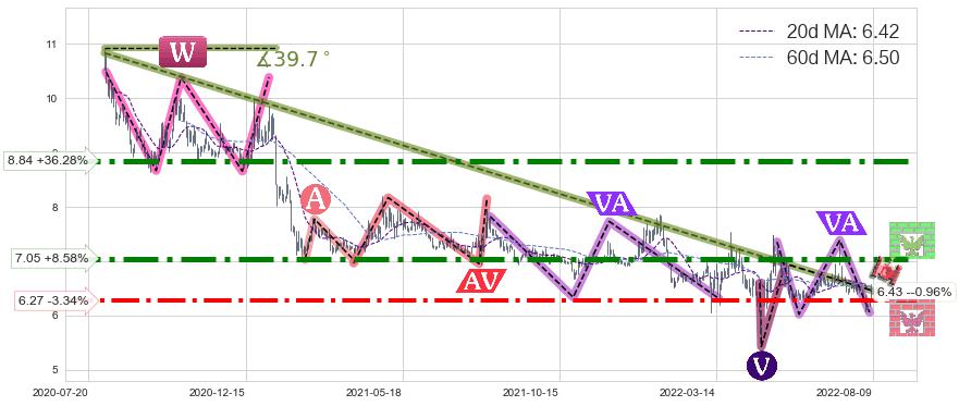 ♘ 阻力价格位7.05,可信任强度90.33%,距离最后交易2022-08-12形成的收盘价格6.49相差 +8.58%