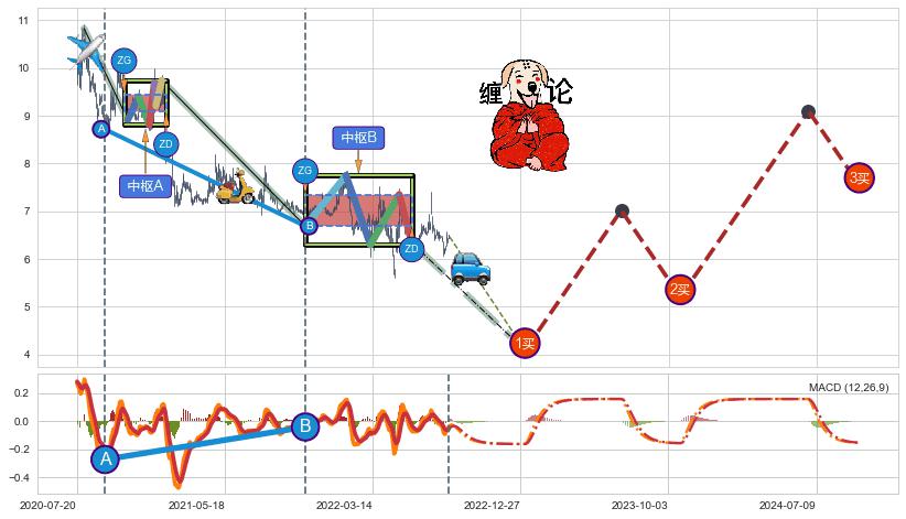 ➢ 【中枢B】:2021-10-28-2022-06-02,中枢由5笔构成,共145交易日, ZG=7.35, ZD=6.69