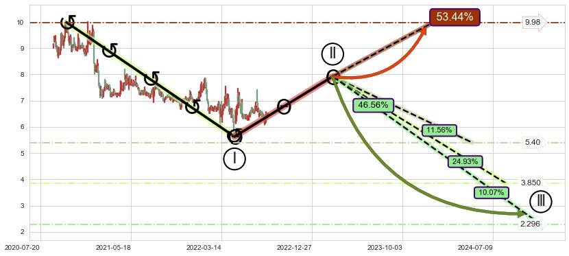 ➢ 循环浪继续向下【最高】位置(2024-05-06, 5.40),匹配聚类样本比例24.83%, 可能性概率11.56%