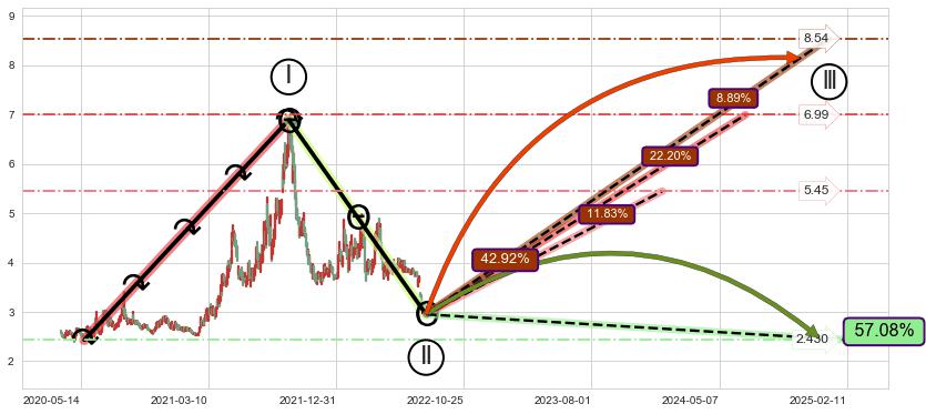 ➢ 循环浪继续向上【最高】位置(2025-01-01, 8.54),匹配聚类样本比例20.72%, 可能性概率8.89%