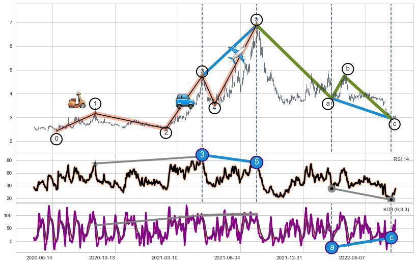 ➣ a,c调整浪RSI走势未出现明显背离