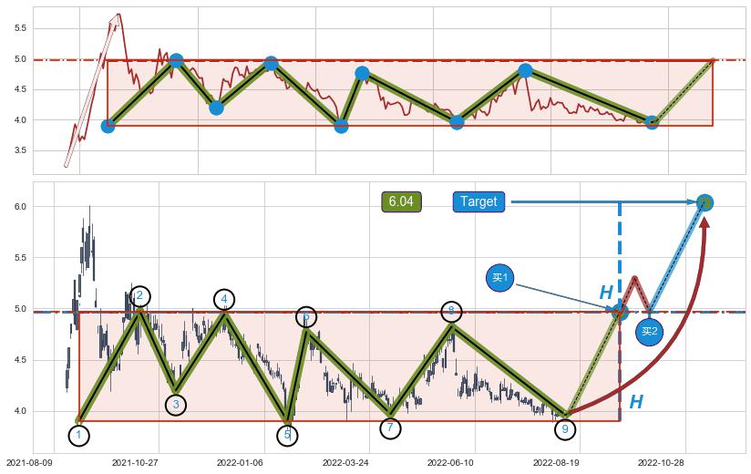 ➢ 2022-02-08到达第❶价格目标位置4.69