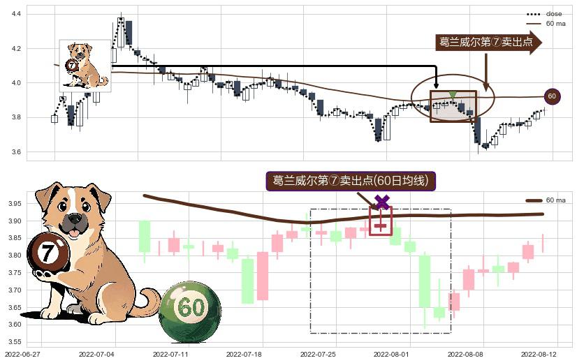 形态多维评估: ⚀ 2022-07-28-日显现 葛兰威尔均线 60日均线 第⑦卖出点 下降趋势的中继信号,后市看跌,卖出信号